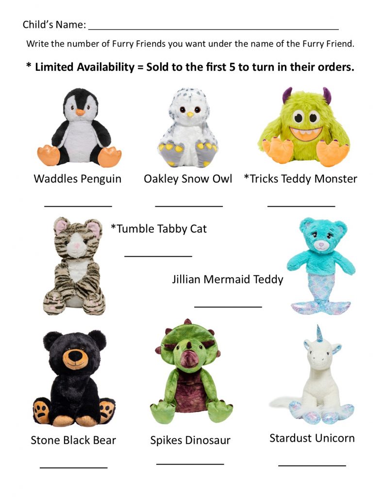 We’re taking orders for Do-It-Yourself Furry Friend Kits—the perfect hands-on activity for kids and adults! Each Furry Friend is 15” tall and comes un-stuffed, along with a stuffing kit that includes: